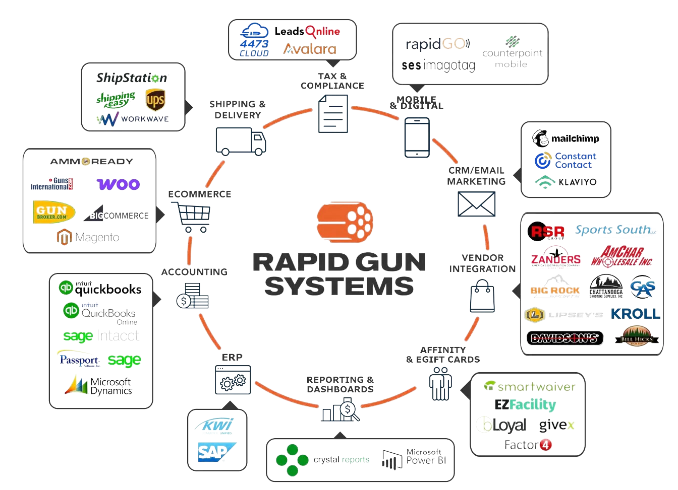 No POS solution can solve every headache on it’s own. Rapid Gun Systems brings a suite of integrated best-in-class tools to expand the functionality and utility of your system in ways you’ve only dreamed about. Some of our most popular integrations include: